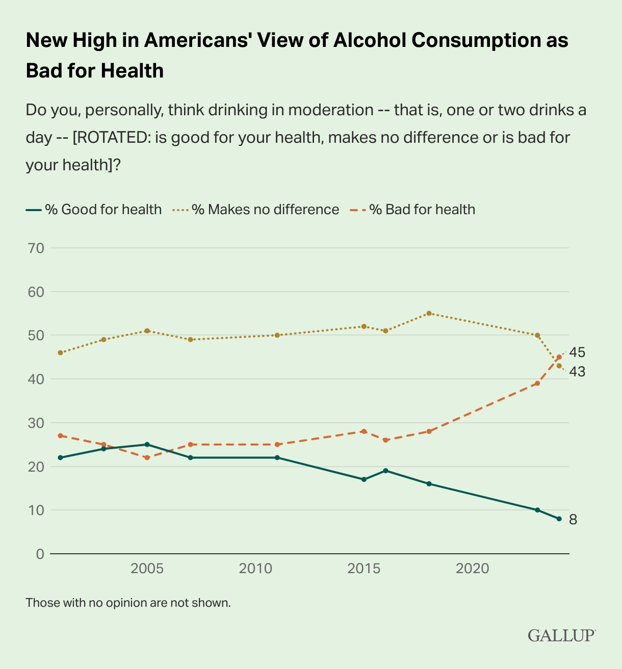 Young Adults Increasingly Think Alcohol Is Bad for Health - https://news.gallup.com/poll/648413/alcohol-consumption-increasingly-viewed-unhealthy.aspx